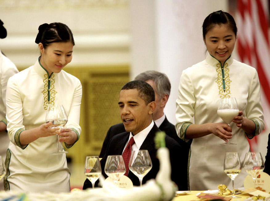 國(guó)家主席胡錦濤11月17日晚在北京人民大會(huì)舉行盛大宴會(huì),歡迎來(lái)華訪問(wèn)的美國(guó)總統(tǒng)奧巴馬。
