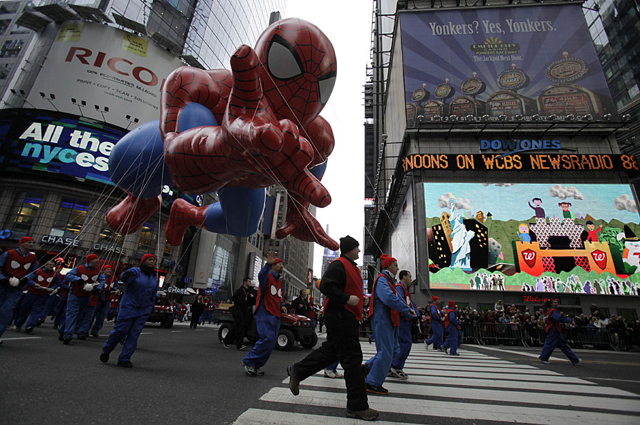 11月26日,2009梅西感恩節(jié)花車與氣球大游行在紐約曼哈頓舉行。梅西感恩節(jié)大游行始于1924年,是全美最盛大的感恩節(jié)慶典。圖片來源:中國新聞網(wǎng)