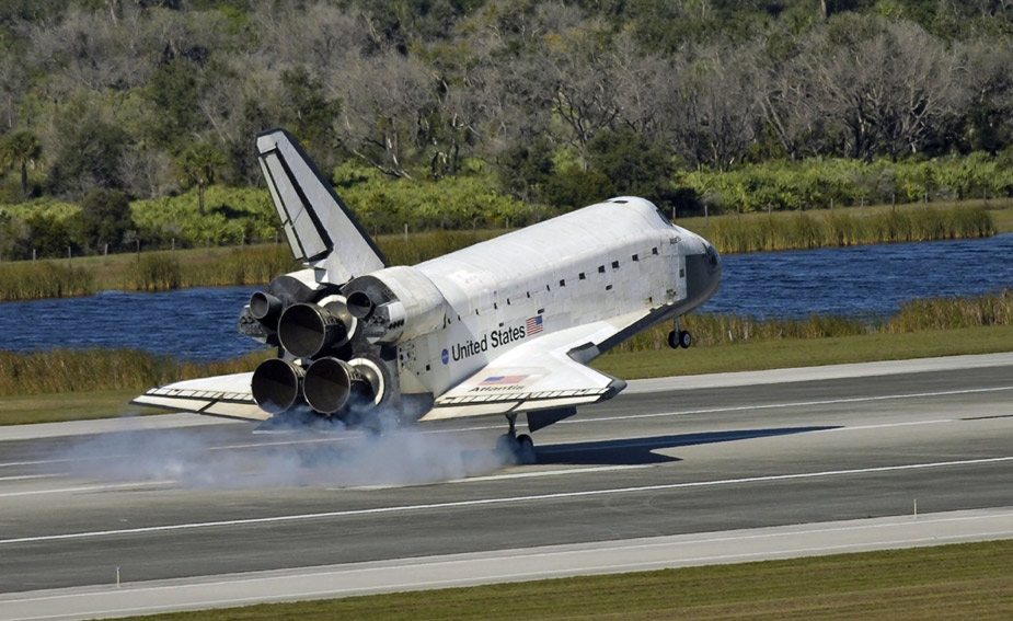 美國“阿特蘭蒂斯”號航天飛機(jī)27日平安降落在佛羅里達(dá)州肯尼迪航天中心,結(jié)束了為期11天的國際空間站之旅。圖片來源:中國新聞網(wǎng)