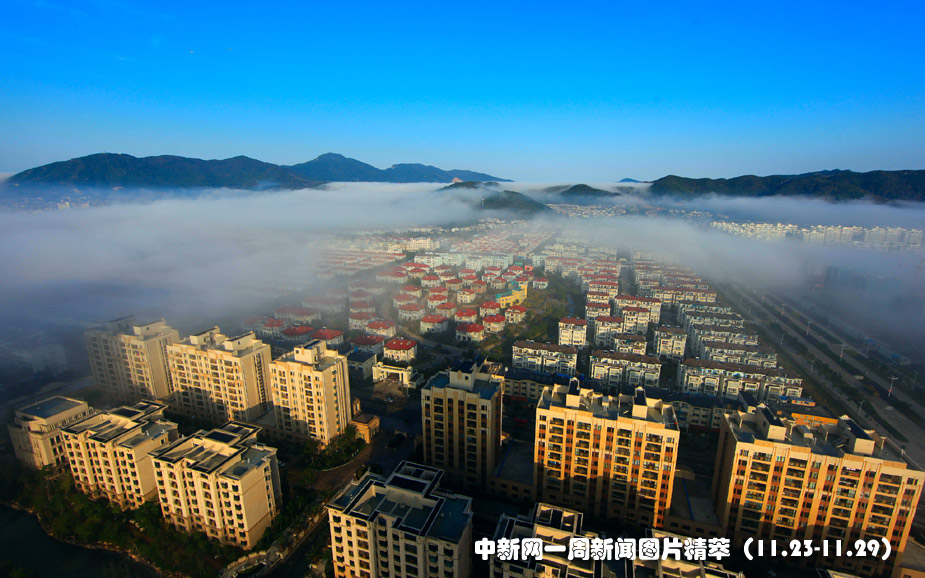 25日(周三),浙江象山半島出現(xiàn)罕見的平流霧。圖片來源:中國新聞網(wǎng)