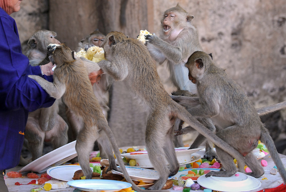 11月29日,泰國迎來了一年一度的傳統(tǒng)節(jié)日“猴節(jié)”。猴子們在每年11月份的最后一個周日迎來自己的節(jié)日。圖片來源:中國新聞網
