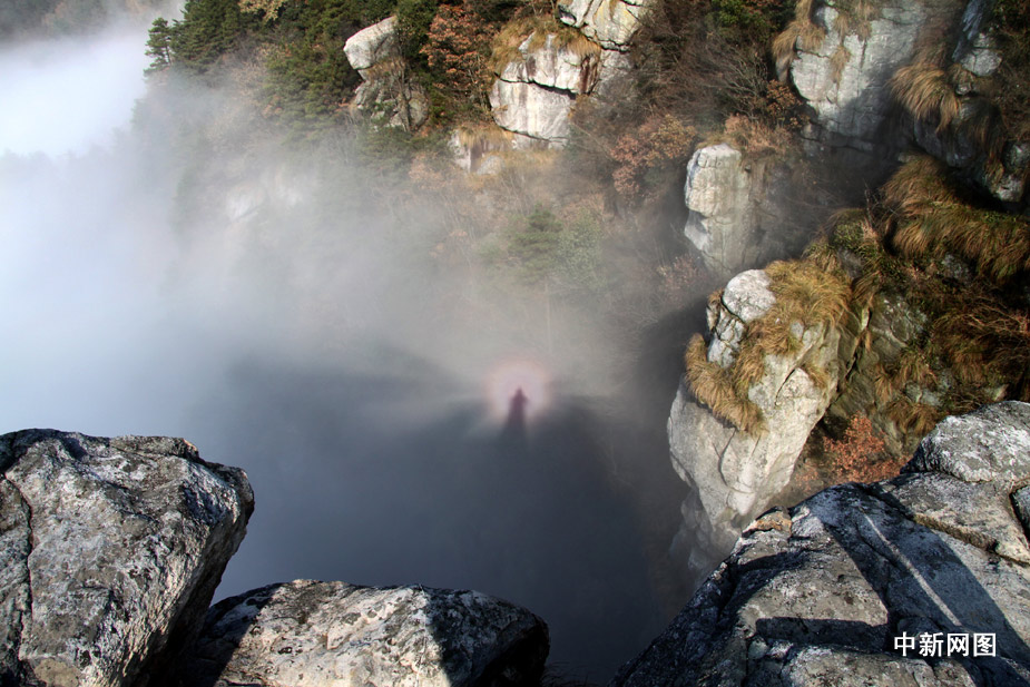 11月29日,受北方弱冷空氣影響,廬山出現(xiàn)平流云、佛光奇觀,佛光持續(xù)了近二個(gè)多小時(shí)。胡國(guó)林 攝 圖片來(lái)源:中國(guó)新聞網(wǎng)