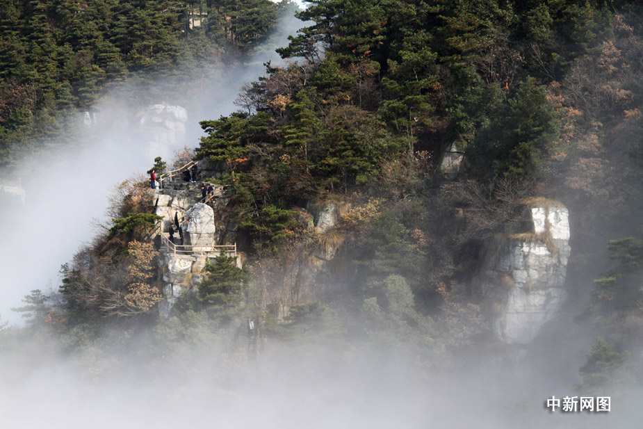11月29日,受北方弱冷空氣影響,廬山出現(xiàn)平流云、佛光奇觀,佛光持續(xù)了近二個(gè)多小時(shí)。當(dāng)日,整個(gè)廬山被濃濃的云霧所籠罩,若隱若現(xiàn),宛如仙境。(胡國(guó)林 陳飛)