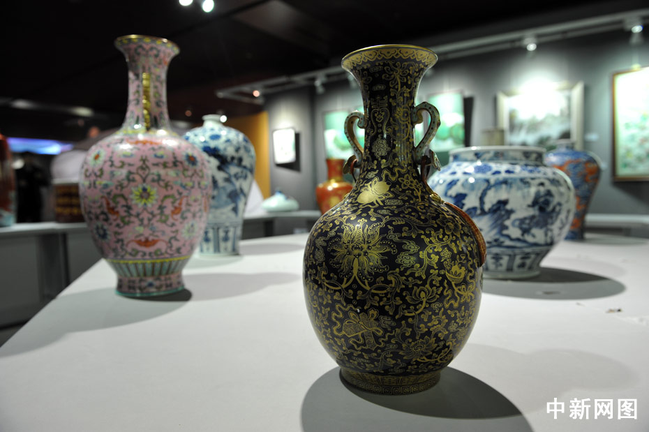 圖為現(xiàn)場(chǎng)展示的景德鎮(zhèn)精品陶瓷作品。中新網(wǎng)記者 金碩 攝