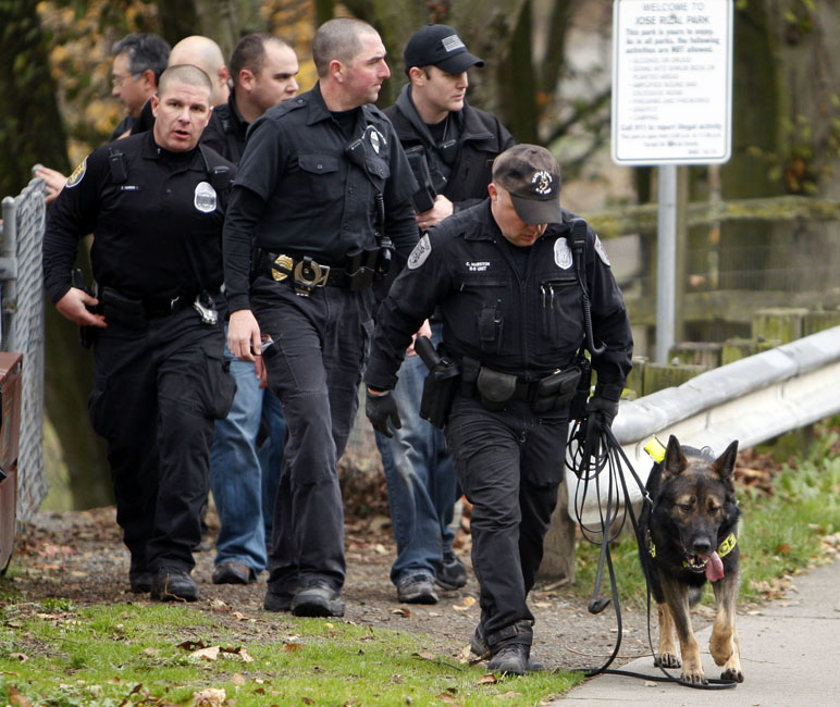 11月29日,美國(guó)4名警察在華盛頓州空軍基地附近一間咖啡館被兩名槍手槍擊,4人當(dāng)場(chǎng)死亡。美國(guó)軍方派遣反恐特警小組展開大規(guī)模追查。圖片來源:中國(guó)新聞網(wǎng)