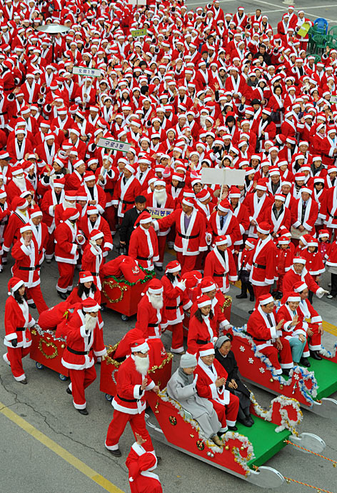 韓國千余“圣誕老人”為籌善款游行