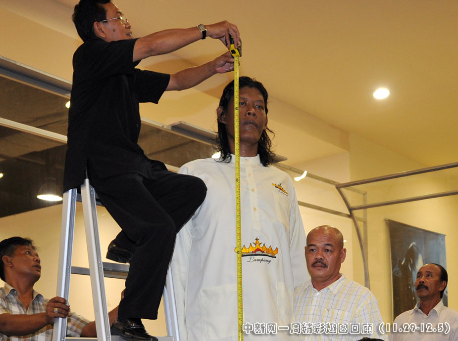 日前,印度尼西亞傳出一個(gè)名叫蘇帕華諾的男子身高達(dá)2.71米,可能是全球第一高人。不過據(jù)后來實(shí)際測量,蘇帕華諾其實(shí)身高2.42米,并未打破吉尼斯紀(jì)錄。圖片來源:中國新聞網(wǎng)>>點(diǎn)擊觀看詳細(xì)內(nèi)容