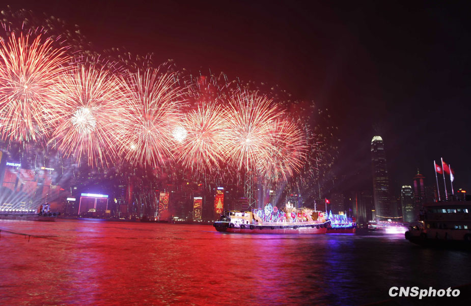 12月5日晚,第5屆東亞運動會開幕式在香港維多利亞港舉行,同時配以花船巡游、燈光效果和煙花匯演,成為一屆富有特色的水上開幕式。中新社發(fā) 盛佳鵬 攝