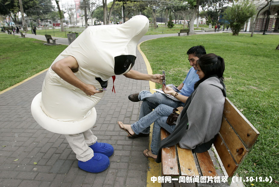 12月1日,世界艾滋病日,智利首都利馬的一對(duì)情侶從防艾宣傳者中接過(guò)避孕套。圖片來(lái)源:中國(guó)新聞網(wǎng)