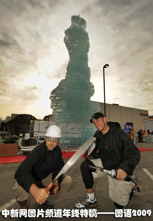 世界最高冰雕:10月27日,美國圣莫尼卡一座造型為《冰河世紀(jì):恐龍的黎明》中小松鼠的巨型冰雕聳立在廣場上。這座冰雕高約48英尺,打破了法國人06年創(chuàng)下的高度為40.28英尺的吉尼斯紀(jì)錄,成為世界上最高的冰雕。圖片來源:中國新聞網(wǎng)