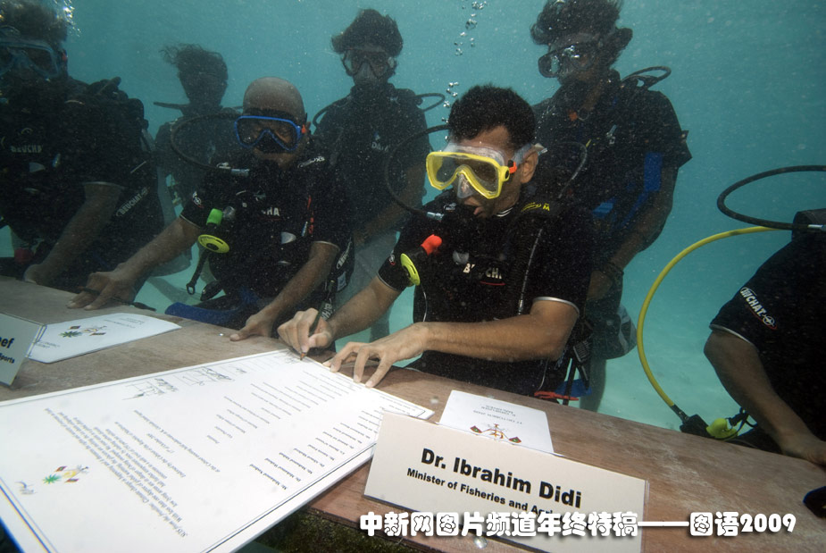 10月17日,印度洋島國馬爾代夫首次在水下召開內(nèi)閣會議。由總統(tǒng)納希德親自主持,十四名內(nèi)閣部長參加。