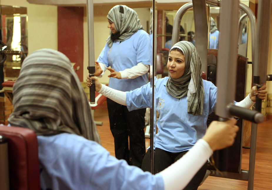 近日,埃及“女子警衛(wèi)”在開羅郊區(qū)一個(gè)體育館進(jìn)行訓(xùn)練。她們專為有一定社會(huì)地位和名氣的女性提供服務(wù)。圖片來源:中國(guó)新聞網(wǎng)