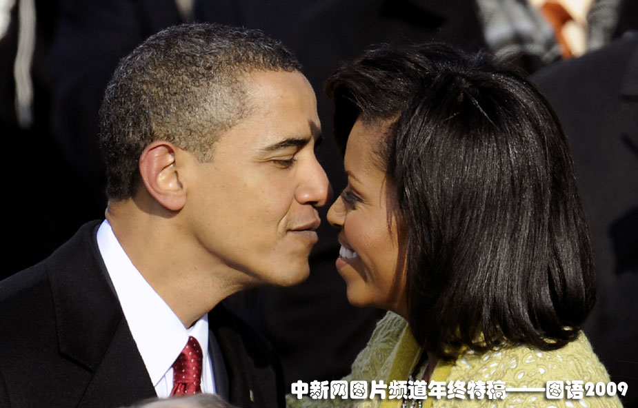 甜蜜的奧巴馬:2009年1月20日上午12點05分,四十七歲的奧巴馬在華盛頓國會山宣誓就職。當就職儀式結(jié)束后,奧巴馬深情親吻妻子。