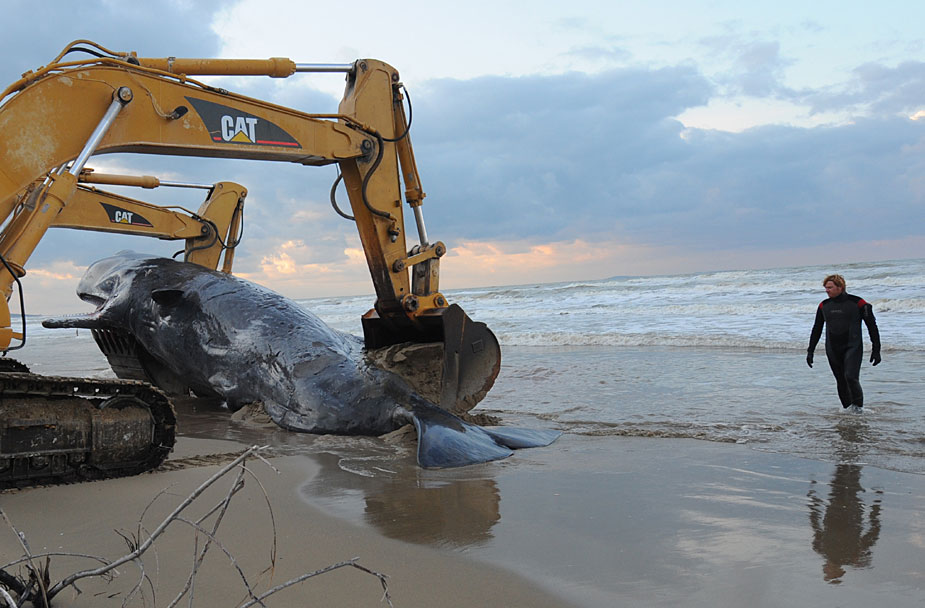 一群抹香鯨12月12日在意大利南部海灘擱淺,其中至少5頭已經(jīng)死亡。據(jù)稱,這群抹香鯨共有9頭,其中有2頭經(jīng)過救援已成功游回大海,目前相關(guān)人員對(duì)另外2頭正在進(jìn)行救援。圖片來源:中國(guó)新聞網(wǎng)