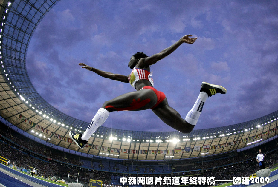 世界田徑錦標賽賽場上,古巴選手薩維涅以14米95的成績獲得女子三級跳遠的金牌。