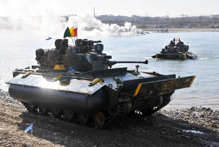 12月16日,韓國第20師團機械化部隊在京畿道驪州南漢江一帶進行大規(guī)模渡河實戰(zhàn)訓練。該訓練以培養(yǎng)戰(zhàn)斗執(zhí)行能力為重點。圖片來源:中國新聞網(wǎng)