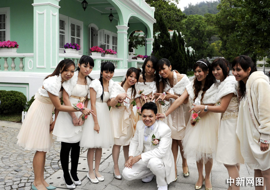 澳門凼仔,新人的俏皮婚禮。中新社記者 廖攀 攝