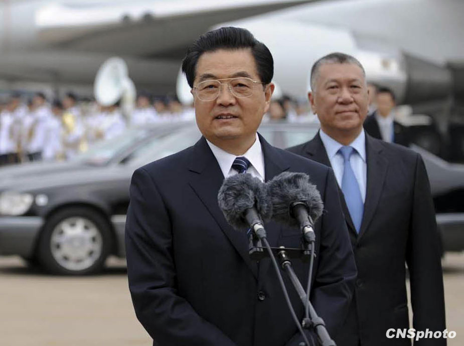 12月19日中午,中共中央總書記、國(guó)家主席、中央軍委主席胡錦濤乘專機(jī)抵達(dá)澳門并在機(jī)場(chǎng)發(fā)表講話。中新社發(fā) 廖攀 攝