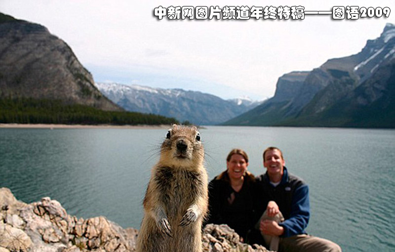一對夫婦加拿大的一個國家公園旅游,打算留影紀念,他們將相機設為自拍模式,并調(diào)好了時間,可當他們擺好pose,即將拍攝的時候,一只頑皮的松鼠突然跳出來,“搶了鏡頭”。