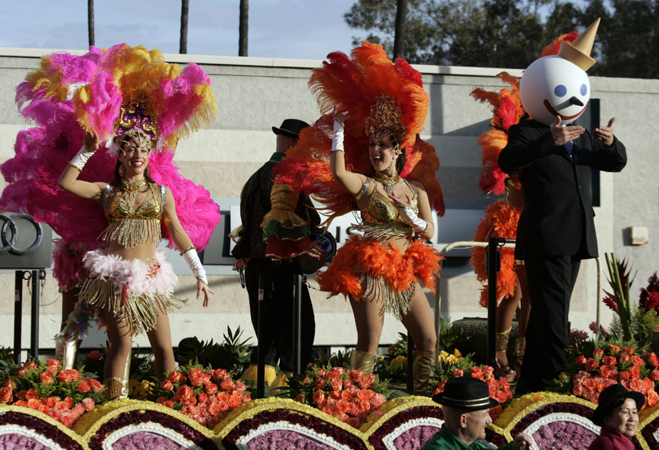 美國當(dāng)?shù)貢r間1月1日,第121屆美國玫瑰花車大游行在加州帕薩迪納市隆重舉行。著名影星成龍助陣中國上海世博花車。圖片來源:中國新聞網(wǎng)