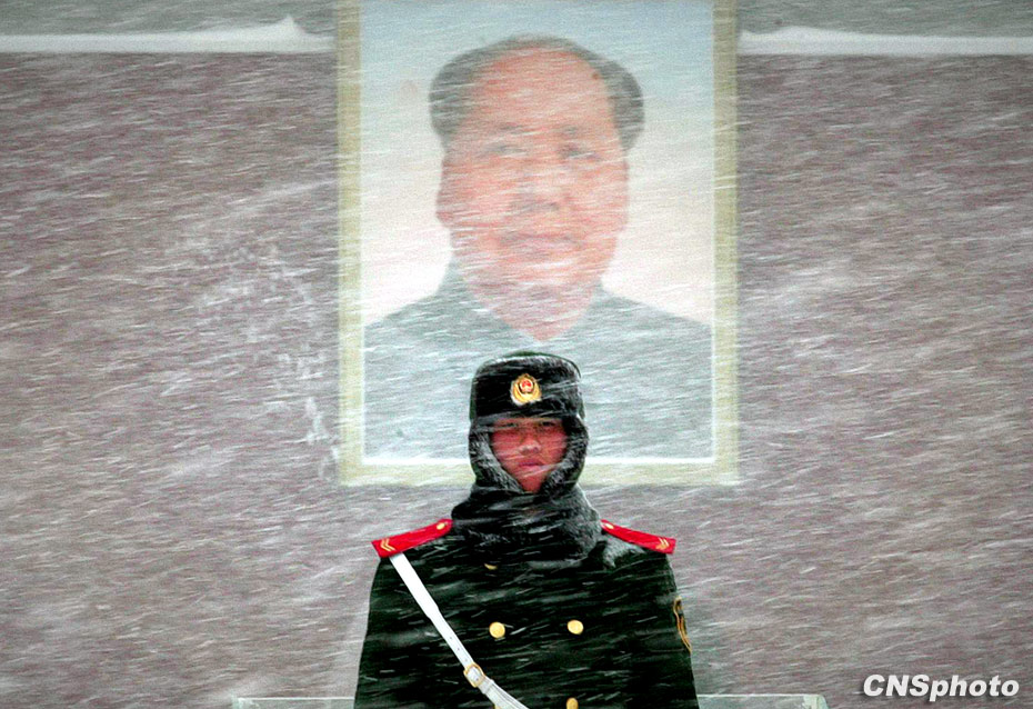 1月3日,一場大雪將華北地區(qū)再度披上厚厚的銀裝。圖為天安門武警在大雪中堅守崗位。 中新社發(fā) 張郎 攝