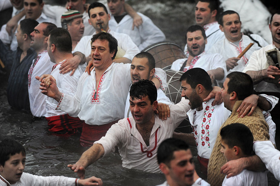 1月6日,在保加利亞卡洛菲爾市,人們在冰冷的河水中跳起保加利亞民間舞蹈霍洛舞,相互祝福在新的一年里身體健康,事事順?biāo)。圖片來源:中國新聞網(wǎng)
