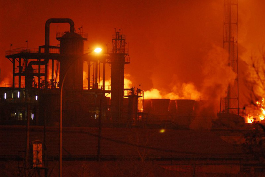 1月7日,蘭州石化公司石油化工廠316罐區(qū)爆炸著火。甘肅省政府當(dāng)日深夜在現(xiàn)場舉行新聞發(fā)布會說,事故造成1人重傷、5人輕傷、9人留院觀察、5人失蹤。 圖為爆炸現(xiàn)場。裴強(qiáng)/CFP