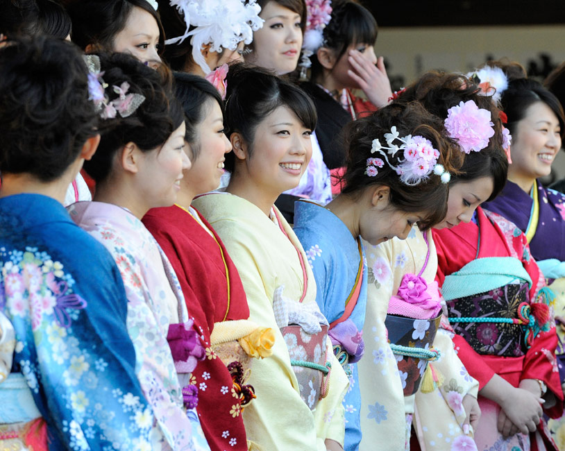 今年的1月11日,是日本傳統(tǒng)的成人節(jié),所有滿20歲的年輕人將宣告自己邁進(jìn)了成人行列。1月8日,日本一家公司年滿20歲的年輕女孩紛紛穿上和服,到廟宇中祈福,提前慶祝成人節(jié)的到來(lái)。