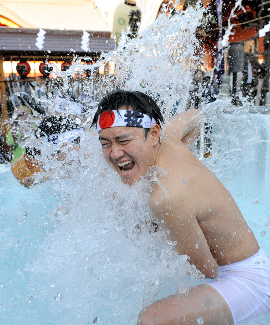 1月9日,日本東京,眾多日本民眾參加傳統(tǒng)的凈化儀式,他們用冷水澆身,祈禱身體和靈魂得到凈化。