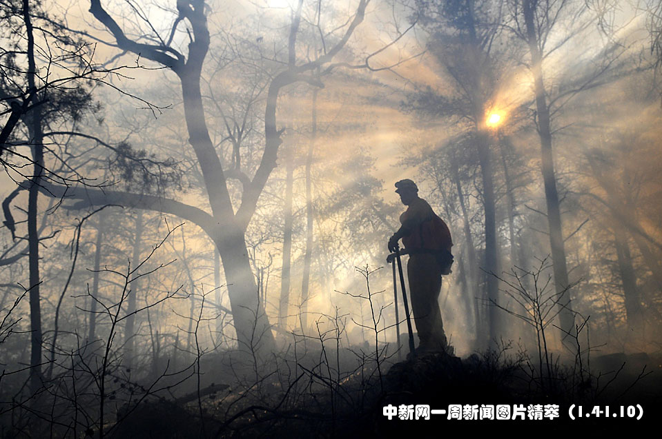 1月6日(周三),一名工作人員在北卡羅來納州克勞德斯山國家公園一處焚燒現(xiàn)場觀察情況。官員們試圖將積累了數(shù)十年的森林垃圾焚燒掉,這些垃圾可能引發(fā)山火。圖片來源:中國新聞網(wǎng)