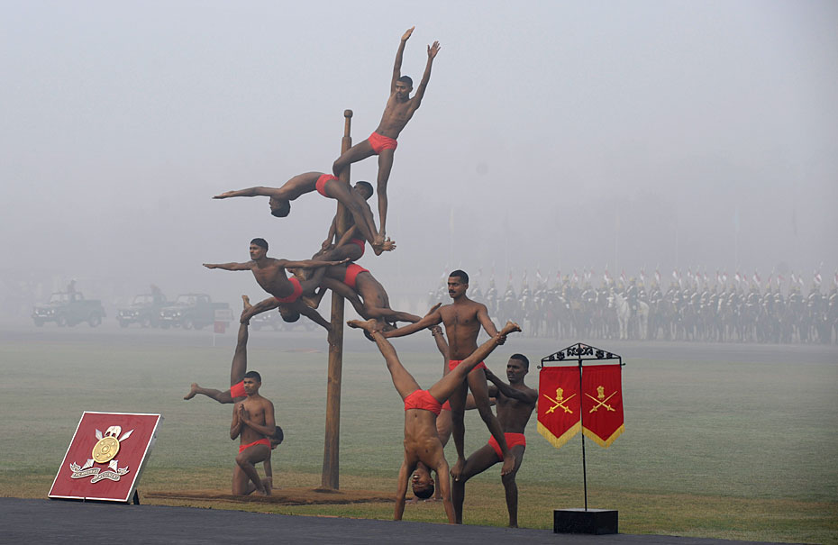 1月15日,在印度首都新德里舉行的建軍節(jié)閱兵式上,印度士兵接受檢閱。圖片來(lái)源:中國(guó)新聞網(wǎng)