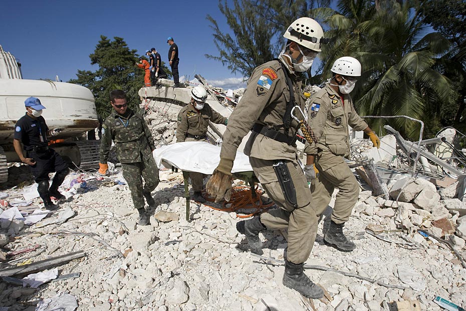 1月16日,海地首都太子港,中國(guó)國(guó)際救援隊(duì)在聯(lián)海團(tuán)總部對(duì)遇難者進(jìn)行搜尋工作。此前八名中方失蹤人員的遺體已全被找到。圖片來(lái)源:中國(guó)新聞網(wǎng)