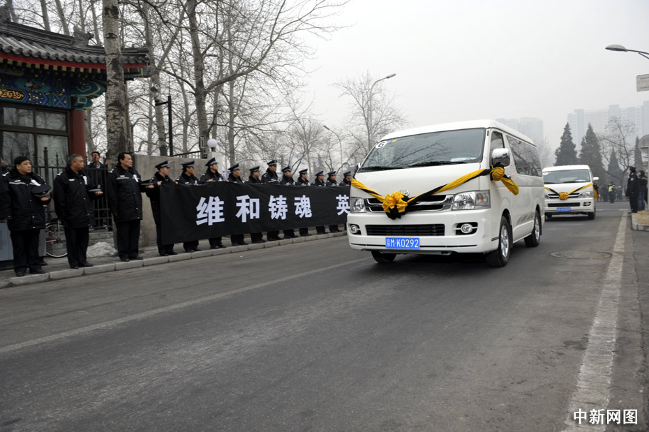 1月19日,北京民眾自發(fā)守候在通往北京八寶山殯儀館的路口迎接英烈的靈柩。當日,八位海地地震遇難中國維和警察的靈柩搭乘專機將抵達北京。中新網(wǎng)記者 金碩 攝