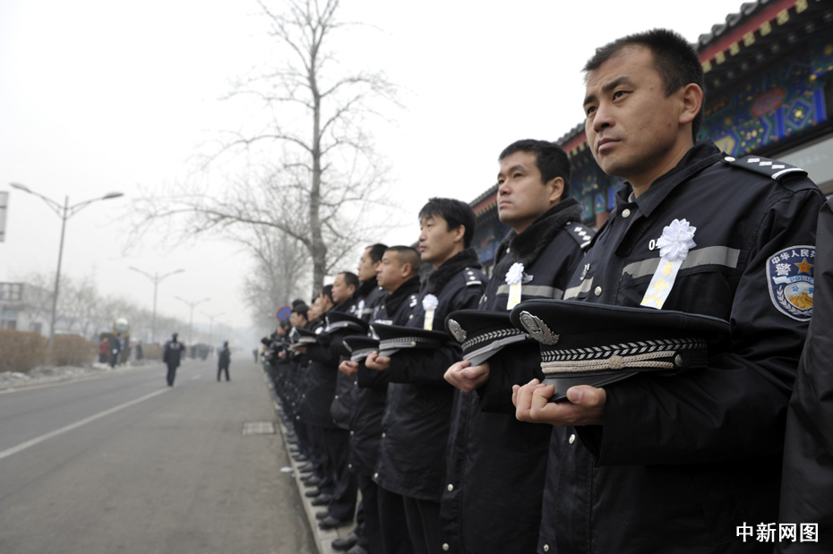 1月19日,北京民眾自發(fā)守候在通往北京八寶山殯儀館的路口迎接英烈的靈柩。當日,八位海地地震遇難中國維和警察的靈柩搭乘專機將抵達北京。中新網(wǎng)記者 金碩 攝