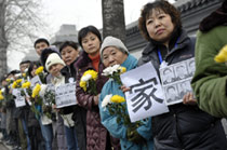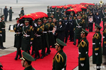 1月19日,北京民眾自發(fā)守候在通往北京八寶山殯儀館的路口迎接英烈的靈柩。當(dāng)日,八位海地地震遇難中國維和警察的靈柩搭乘專機將抵達北京。中新網(wǎng)記者 金碩 攝