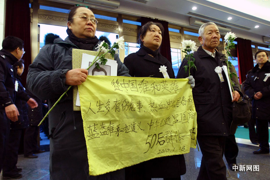 海地地震遇難中國維和警察遺體告別儀式1月20日上午9時(shí)在北京八寶山殯儀館大禮堂舉行。圖片來源:中國新聞網(wǎng)