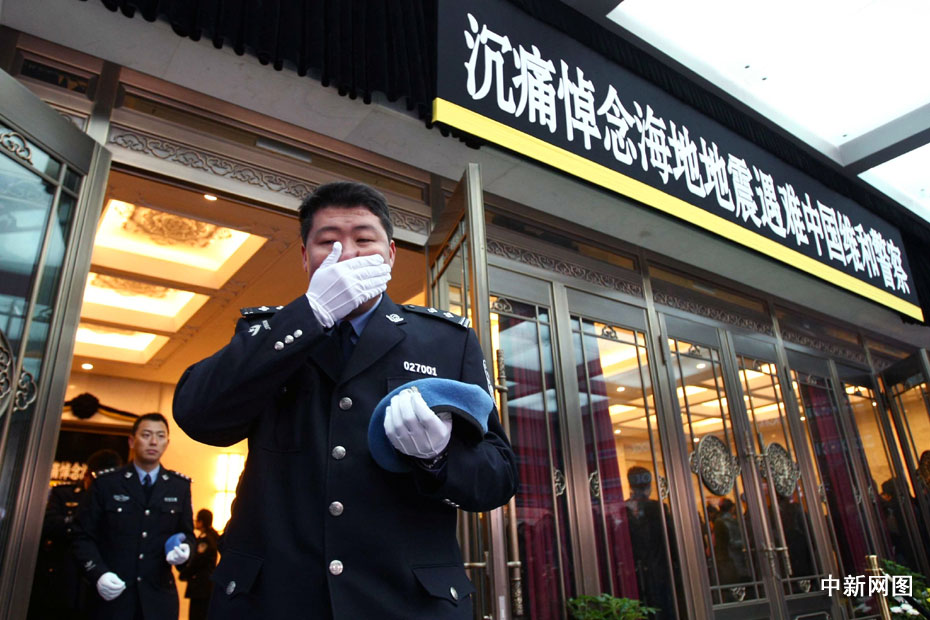 海地地震遇難中國(guó)維和警察遺體告別儀式1月20日上午9時(shí)在北京八寶山殯儀館大禮堂舉行。圖片來(lái)源:中國(guó)新聞網(wǎng)
