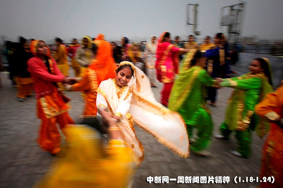 1月19日,印度阿姆利則一群女學(xué)生在印度春節(jié)前夜跳著傳統(tǒng)舞蹈。圖片來源:中國新聞網(wǎng)