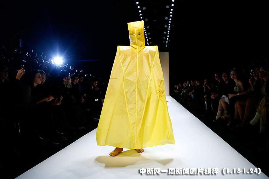 1月19日,一個模特在柏林時裝上展示設(shè)計師帕特里克摩爾的服飾作品。 圖片來源:中國新聞網(wǎng)