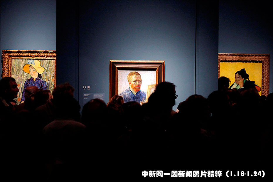 1月23日,倫敦梵高展《真實(shí)的梵高在英國(guó)倫敦皇家藝術(shù)學(xué)院舉行,各路媒體記者前來?yè)屜纫欢么髱煹淖髌。照片正中的這幅畫為梵高的自畫像。圖片來源:中國(guó)新聞網(wǎng)