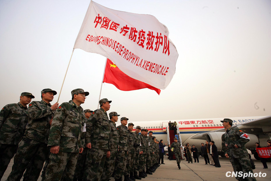 1月24日18時,由中國人民解放軍醫(yī)護人員和管理人員組成的中國醫(yī)療防疫救護隊一行40人乘坐軍運包機離開北京,啟程前往海地進行人道主義救援任務。