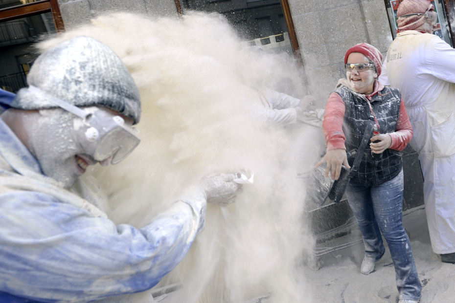 1月24日,西班牙西北部的一座村莊舉辦的狂歡節(jié)中上演瘋狂的“面粉大戰(zhàn)”。圖片來源:中國新聞網(wǎng)