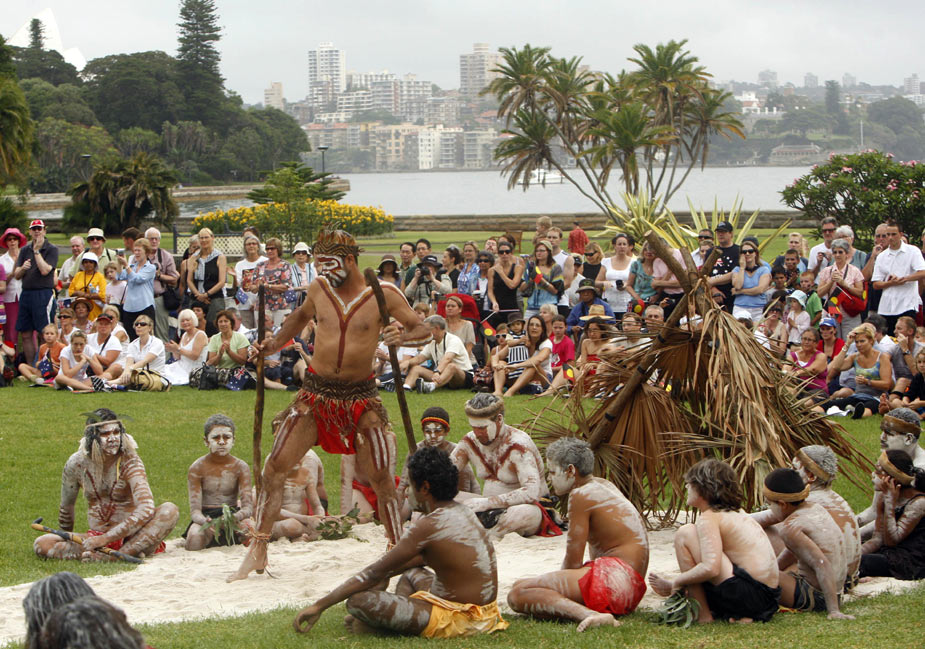 1月26日,澳大利亞土著居民在悉尼表演傳統(tǒng)舞蹈慶祝澳大利亞國(guó)慶日。