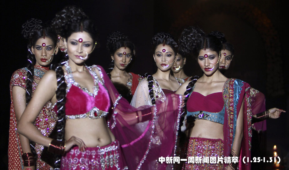 1月30日(周六),在印度班加羅爾時(shí)裝周上,眾多靚模閃亮登場(chǎng)。圖片來源:中國(guó)新聞網(wǎng)