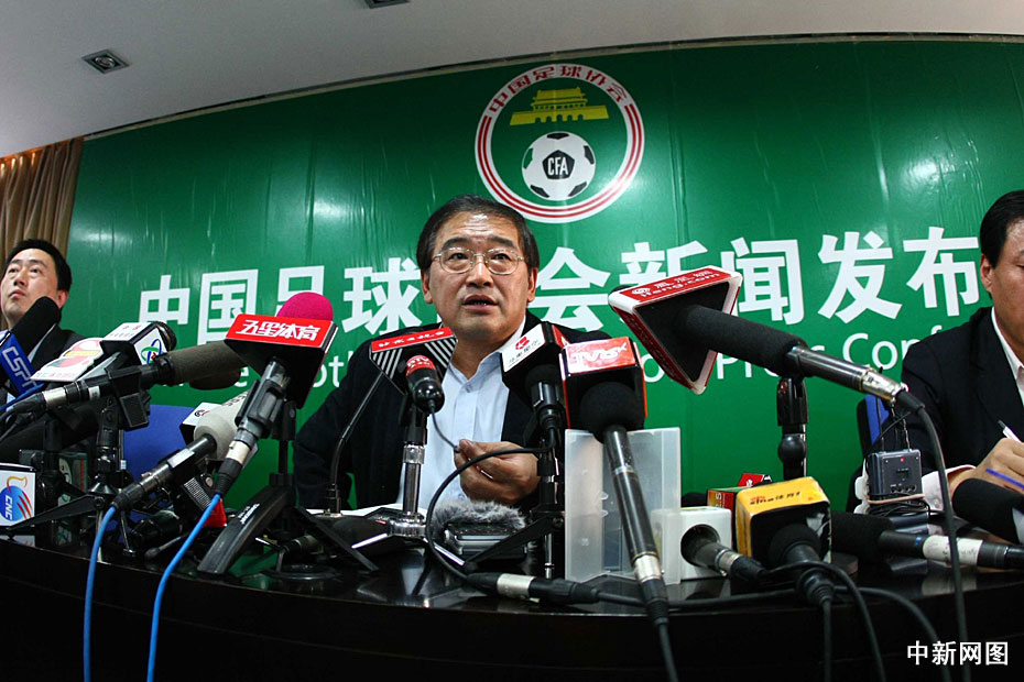 圖為中國足協(xié)新任掌門人韋迪召開首個(gè)新聞發(fā)布會(huì)現(xiàn)場(chǎng)。中新社記者 富田 攝