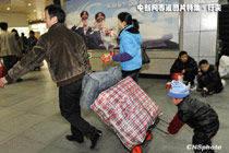 春節(jié)臨近,出門在外的人拎著大包小包地回家過(guò)年。這行囊或重或輕,可能是帶給父母的孝敬,也可能是帶給愛人的心動(dòng),但每個(gè)行囊中一定都會(huì)裝著人們一年來(lái)收獲的喜悅之情。中新社發(fā) 吳元峰 攝