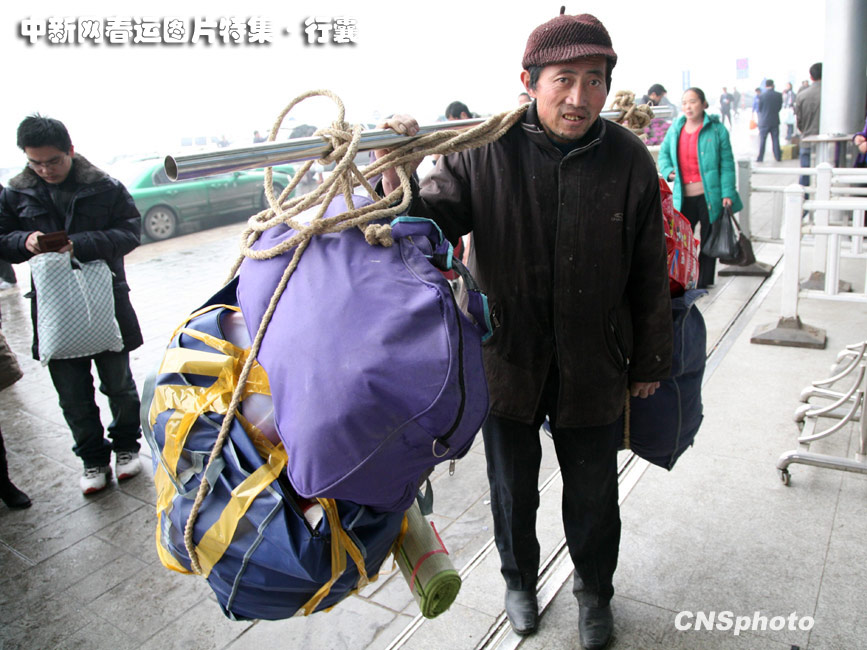 春節(jié)臨近,出門在外的人拎著大包小包地回家過年。這行囊或重或輕,可能是帶給父母的孝敬,也可能是帶給愛人的心動,但每個行囊中一定都會裝著人們一年來收獲的喜悅之情。中新社發(fā) 鐘山 攝