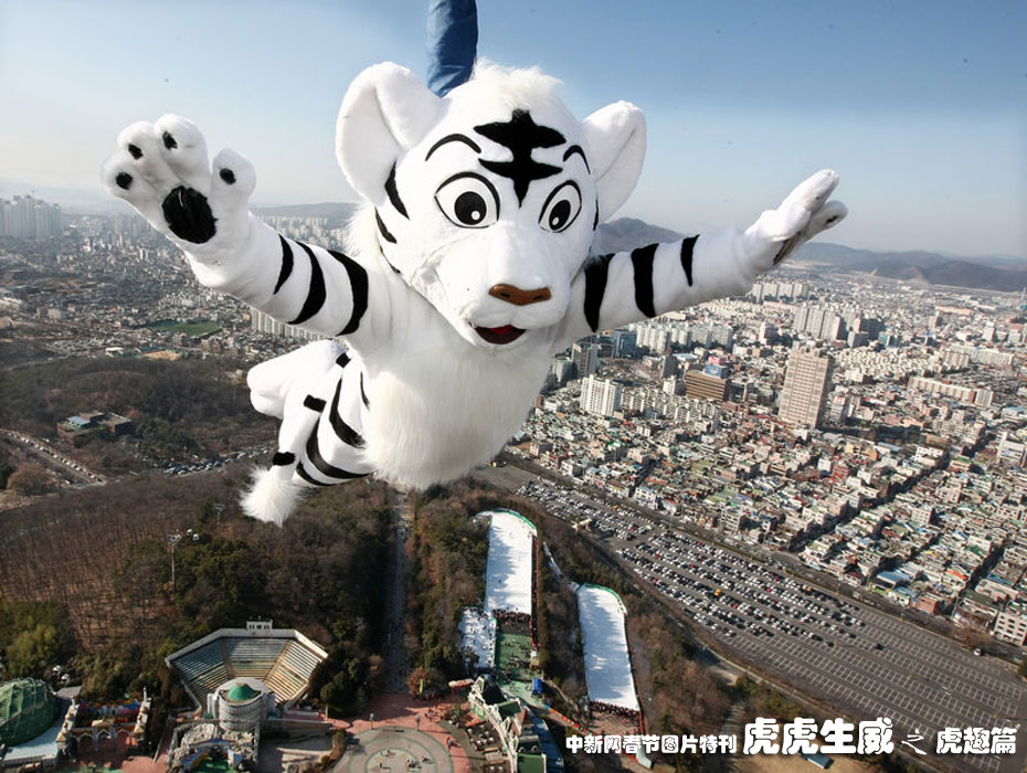 1月3日,為慶祝時(shí)隔60年迎來的白虎年,韓國大邱市民身穿白虎服裝跳蹦極,向人們致以新年的問候。圖片來源:CFP
