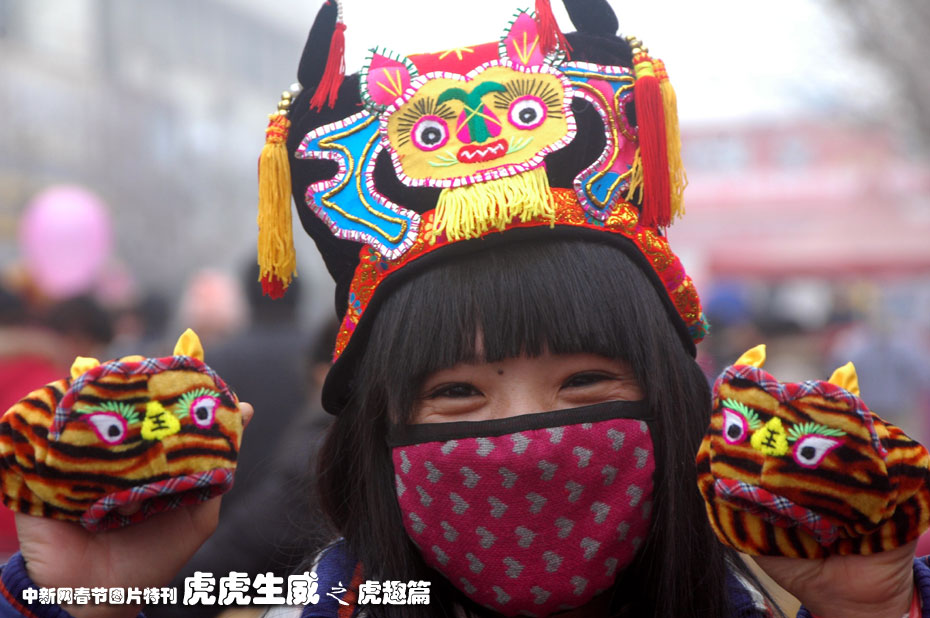 12月1日,山東郯城縣馬頭鎮(zhèn)集市上,虎頭帽、虎頭鞋俏銷。魯南地區(qū)民間有“虎年到送鞋帽”的傳統(tǒng)習俗。農歷虎年將至,郯城縣群眾紛紛購買這種用花線、絨布和棉花等材料純手工縫制的鞋帽送給親朋孩童。中新社發(fā) 房德華 攝