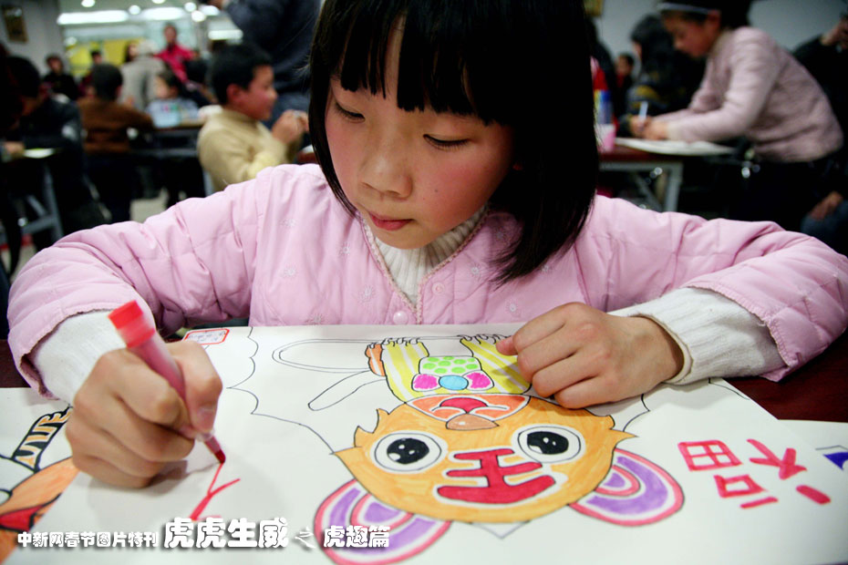 1月23日,“百童畫百虎”活動(dòng)在南京鳳凰書城舉行,約100名4歲到14歲的小朋友現(xiàn)場(chǎng)切磋畫技,畫出自己心中最可愛的老虎模樣,迎接即將到來的虎年。中新社發(fā) 鐘山 攝